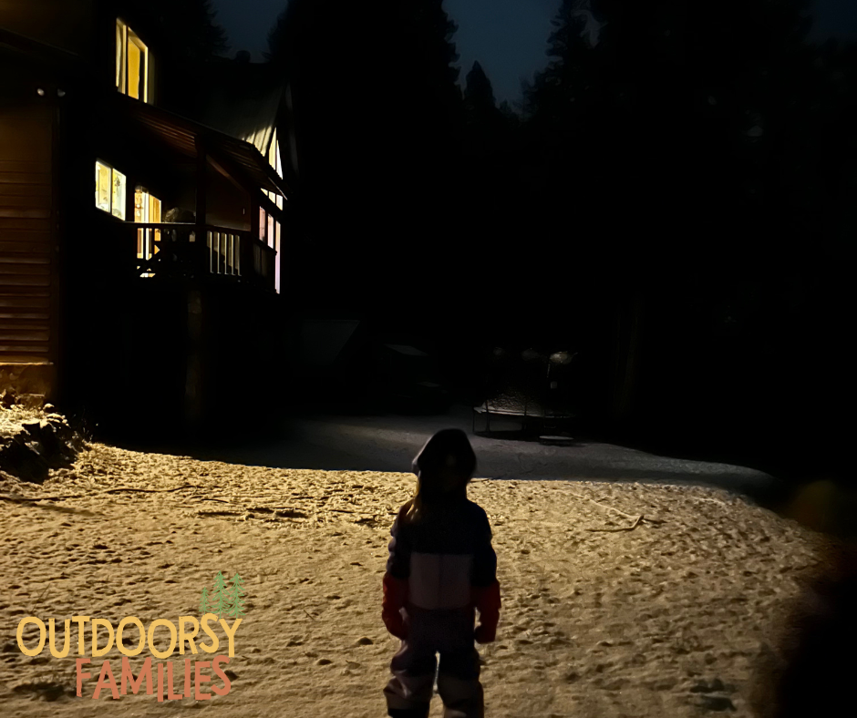 We all know that it becomes dark MUCH earlier in winter. Where we live, it’s dark by 4 PM in December. My kids get out of school at 3:30, and we have a twenty minute drive home. Spending time outside each day is one of our family’s priorities, so almost all our kids’ outside play takes place in the dark during the winter! One of our favorite things to do as a family is to take a night hike.