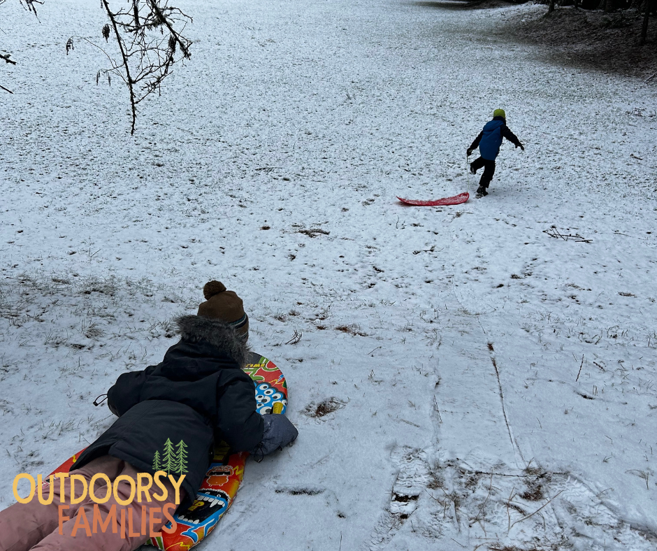 Choose a hill that’s clear of hazards and have a great time sledding! Since we live in the country (and in the mountains!) this is an activity my kids do all the time! If you live in a more urban area, be sure to search for a local sledding hill to visit. Sledding is a great way to burn off energy on a snowy day.